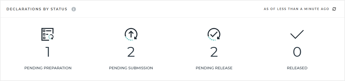 Declarations updated in the last 90 days will be shown, except for the Released category, which will show the last 7 days.