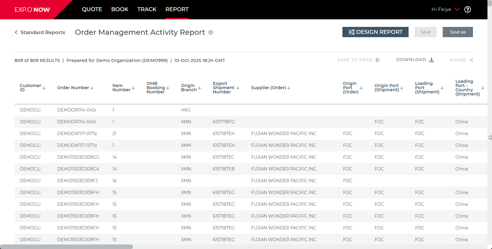 Order Management Activity Report - Provide flexible visibility showing the entire order process from the time Expeditors receives the order and up to its delivery. The report can be run at the order or item level and narrow in on specific shipment milestones.