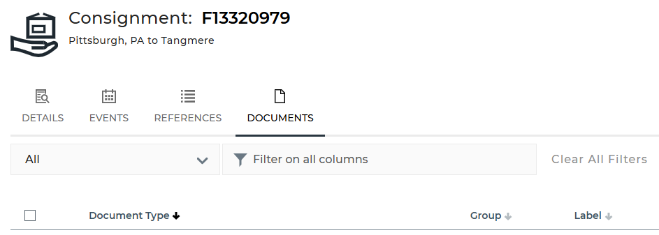 The Track - Consignments and Cross-Dock now has a Documents tab that will show documents for the consignment and cross-dock.